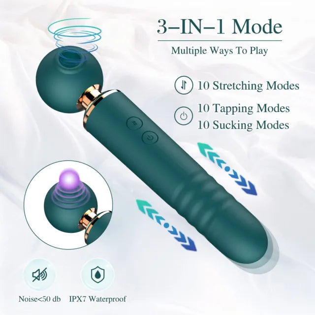 10-Speed 3-in-1 Sucking & Thrusting Wand Massager – Rechargeable & Waterproof