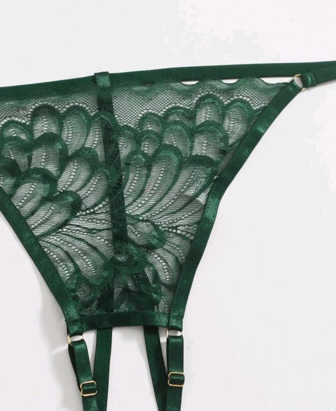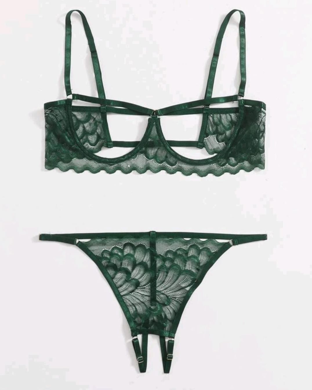 Green Plus Cut out Underwire Crotchless Lingerie Set