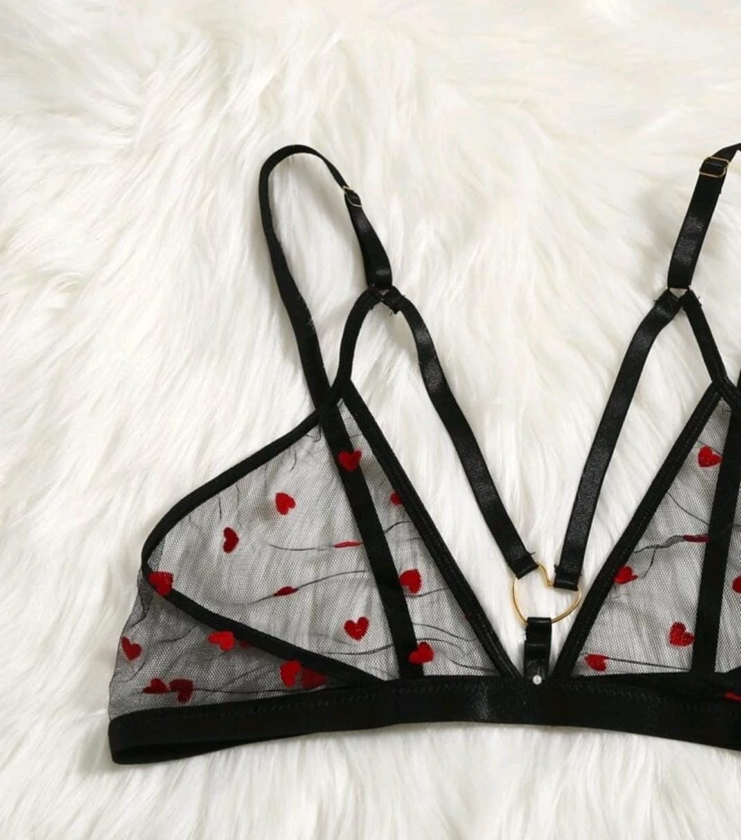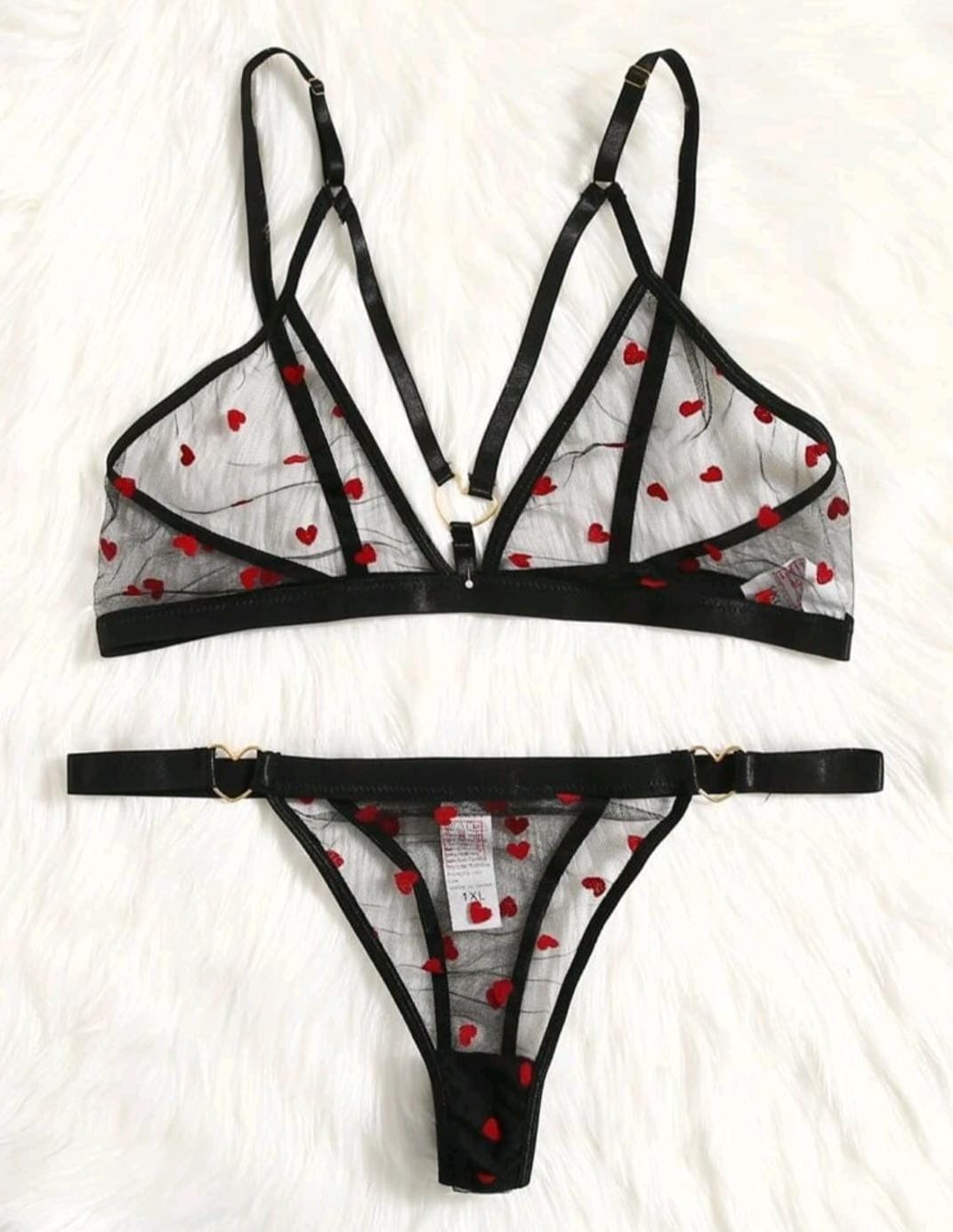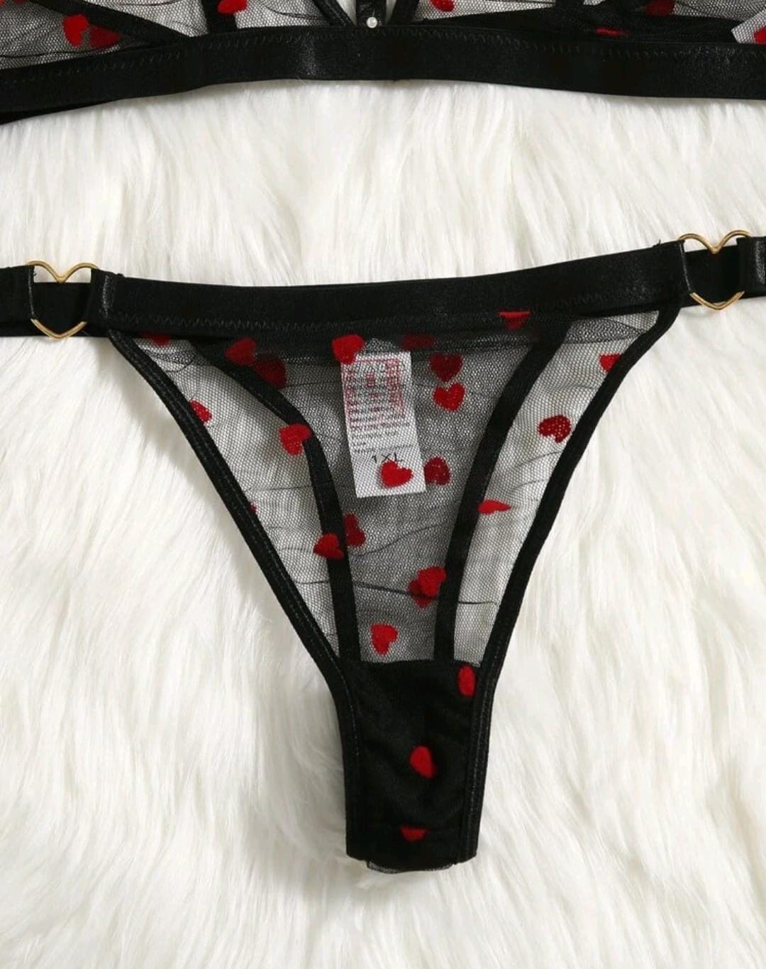 Plus Heart Pattern Sheer Mesh Lingerie Set